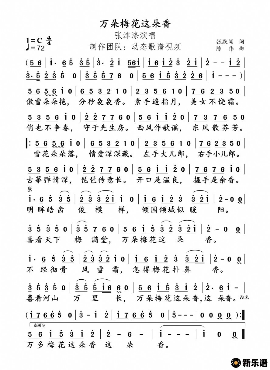 张津涤演唱的万朵梅花这朵香歌词,万朵梅花这朵香简谱.