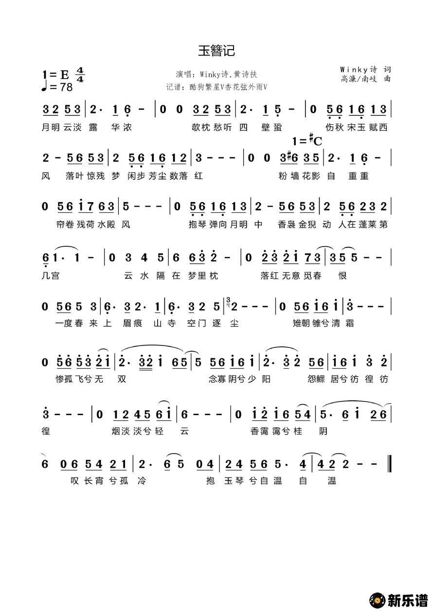 《玉簪记》简谱 Winky诗黄诗扶-杏花弦外雨制谱