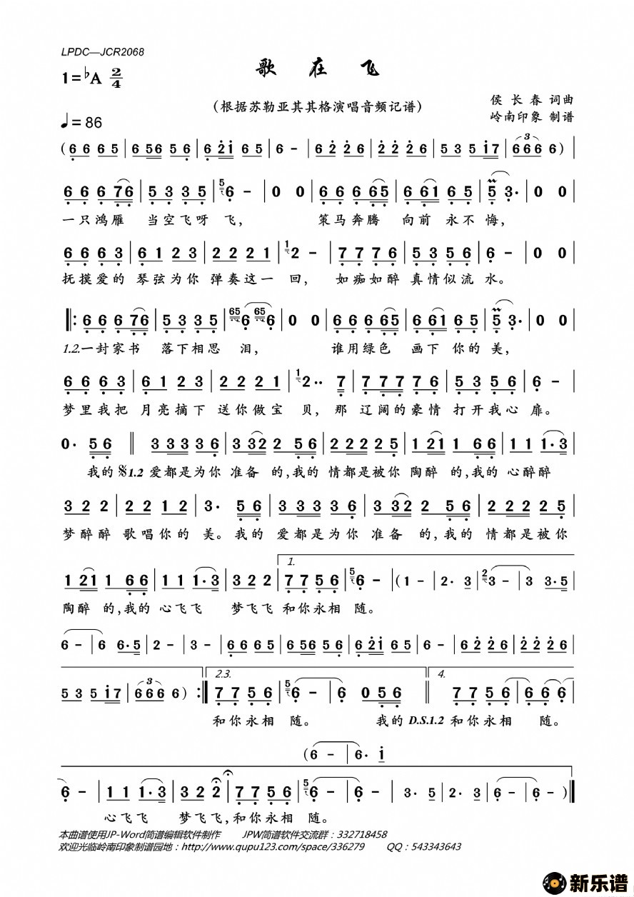 《歌在飞》简谱 苏勒亚其其格-岭南印象制谱