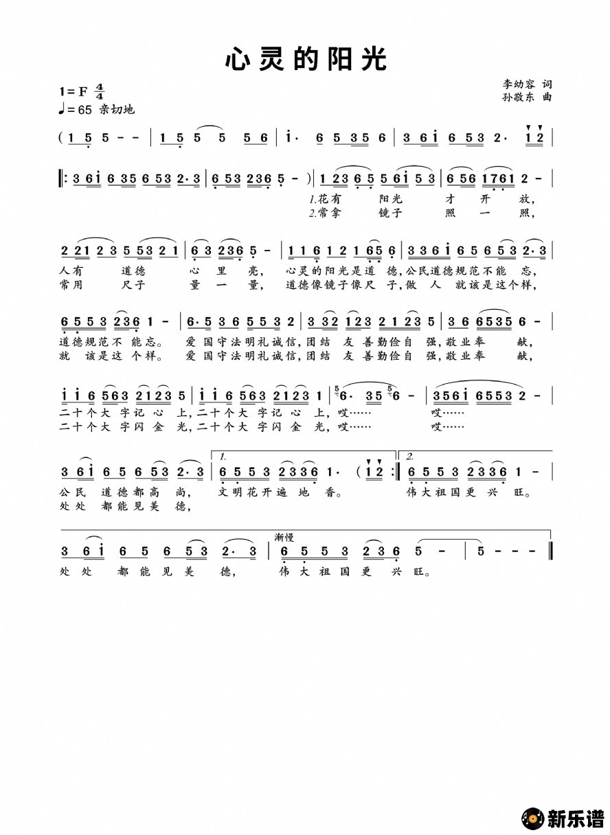 《心灵的阳光》简谱 雷佳-曲谱爱好者制谱