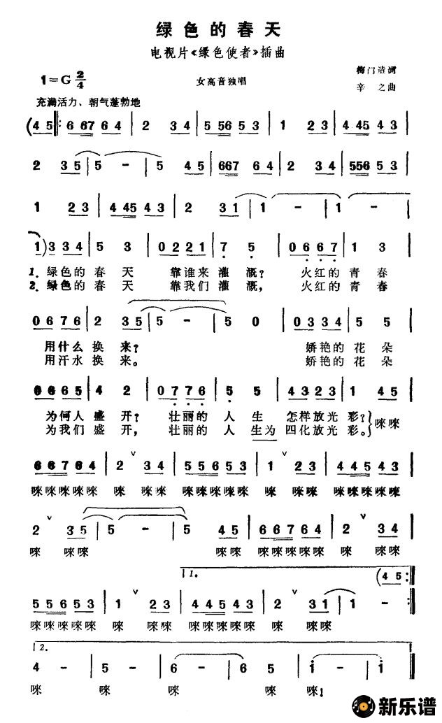演唱的红色的春天(电视片《绿色使者》插曲)歌词,红色的春天(电视片《绿色使者》插曲)简谱.