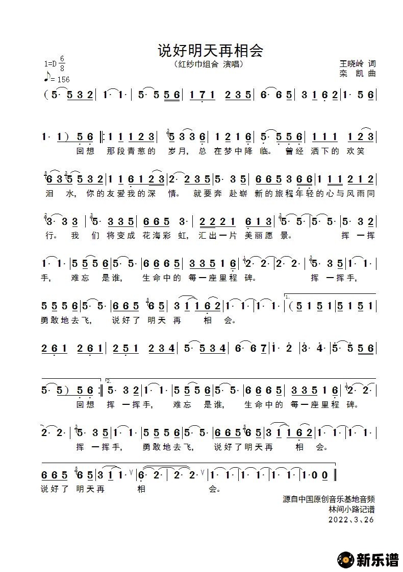 《说好明天再相会》简谱 红纱巾组合-曲谱爱好者制谱