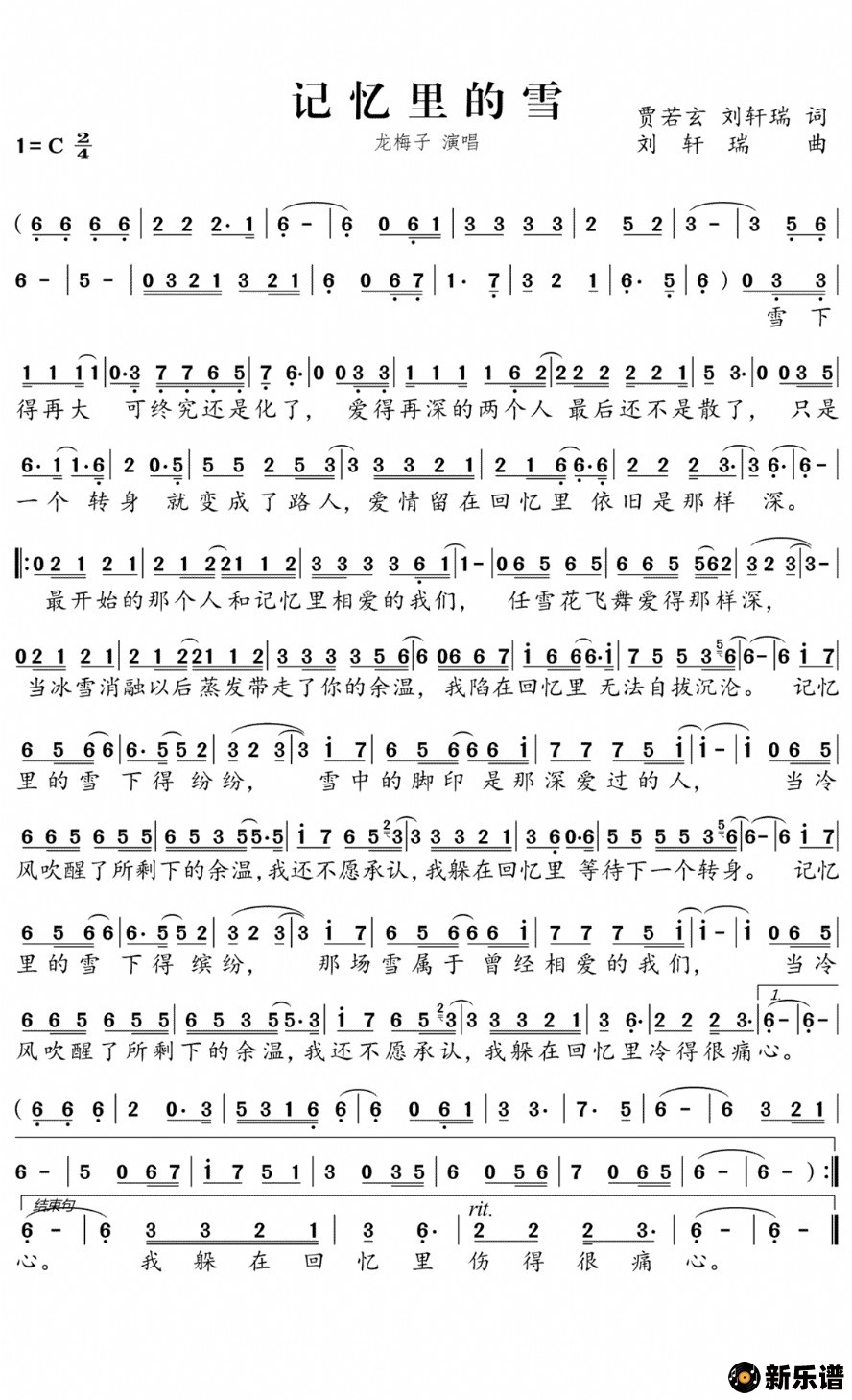 《记忆里的雪》简谱 龙梅子-曲谱爱好者制谱