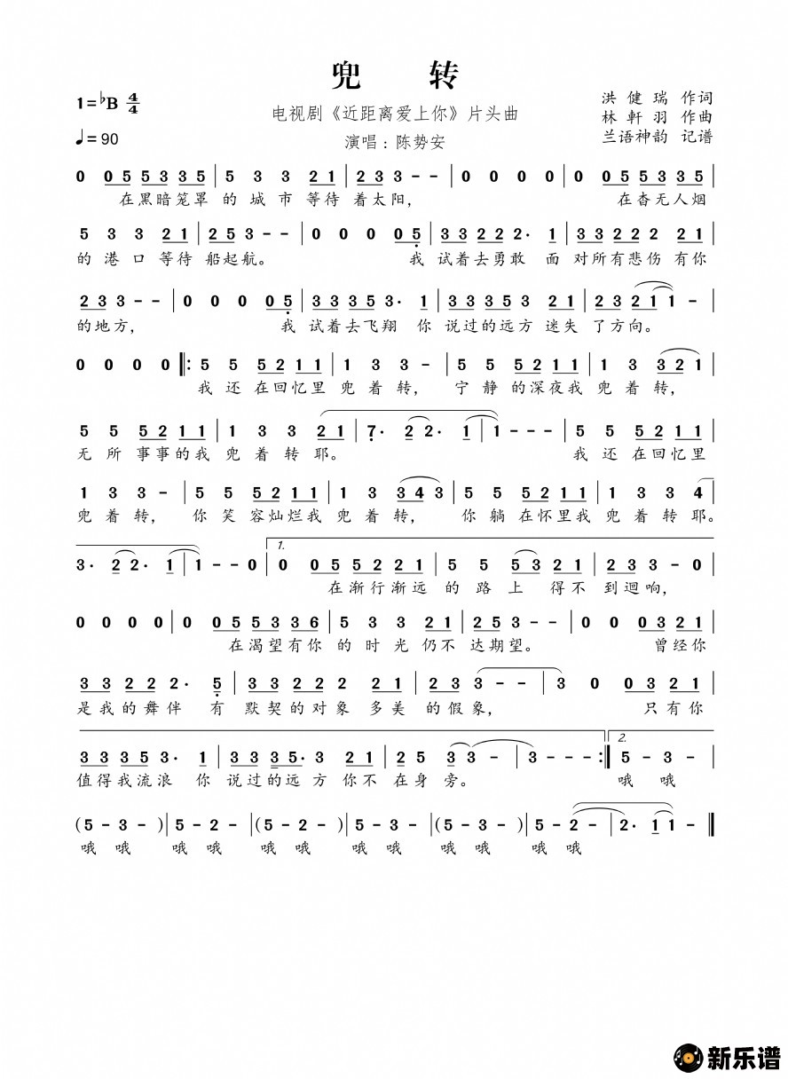 《兜转(电视剧《近距离爱上你》片头曲)》简谱 陈势安-兰语神韵制谱