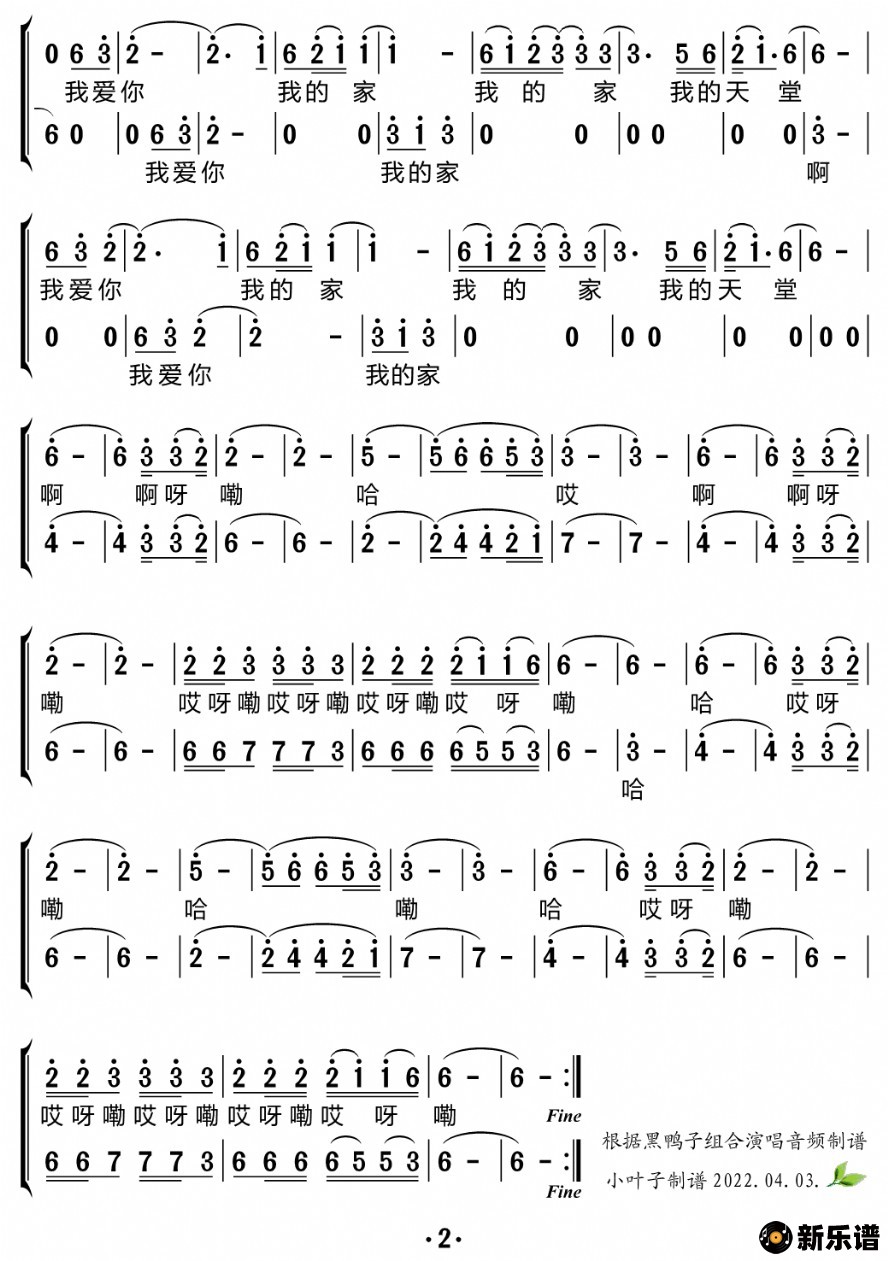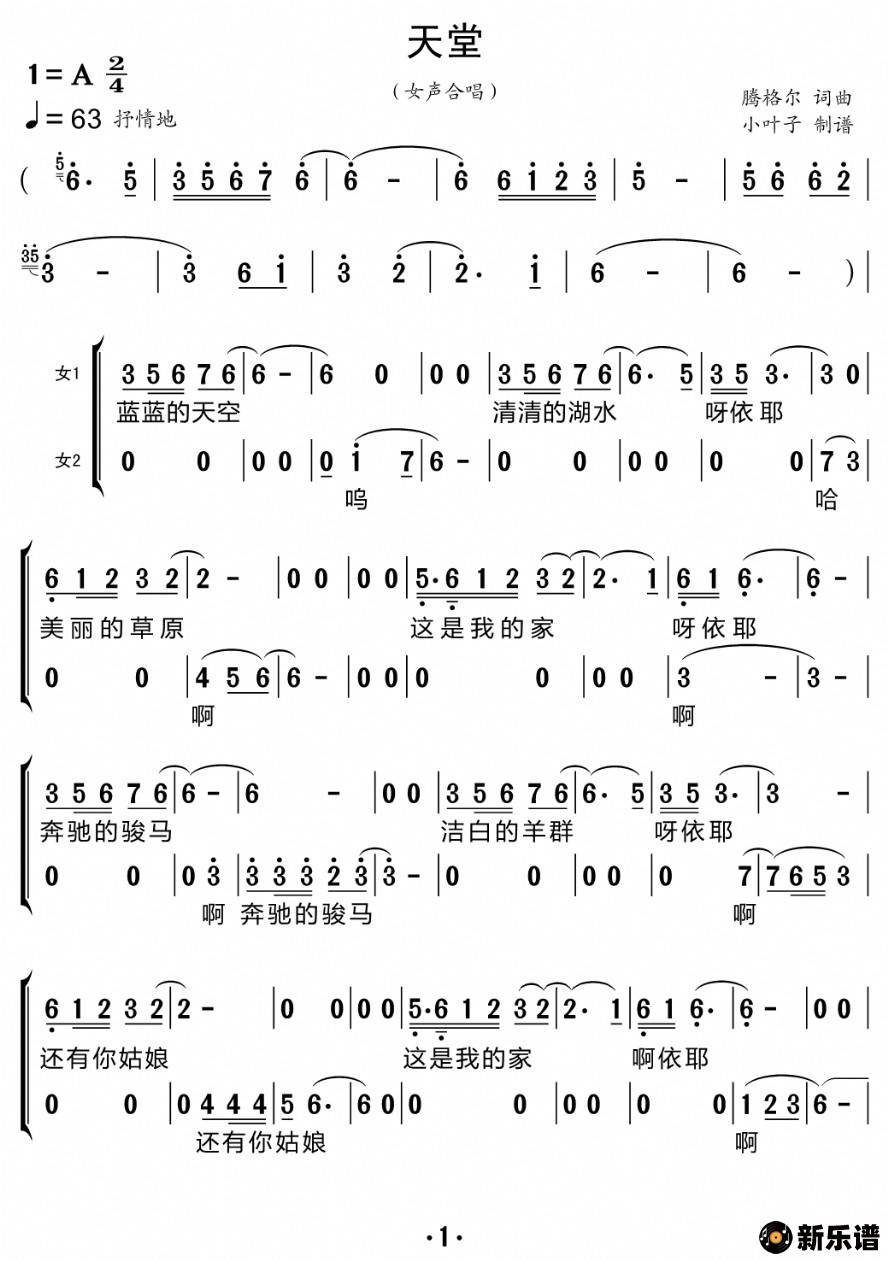 《天堂(合唱谱)》简谱 黑鸭子组合-小叶子制谱