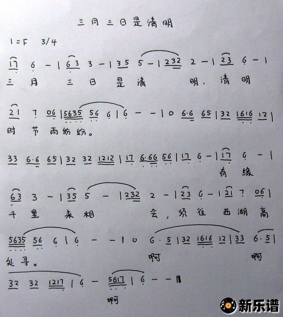群星演唱的三月三日是清明歌词,三月三日是清明简谱.