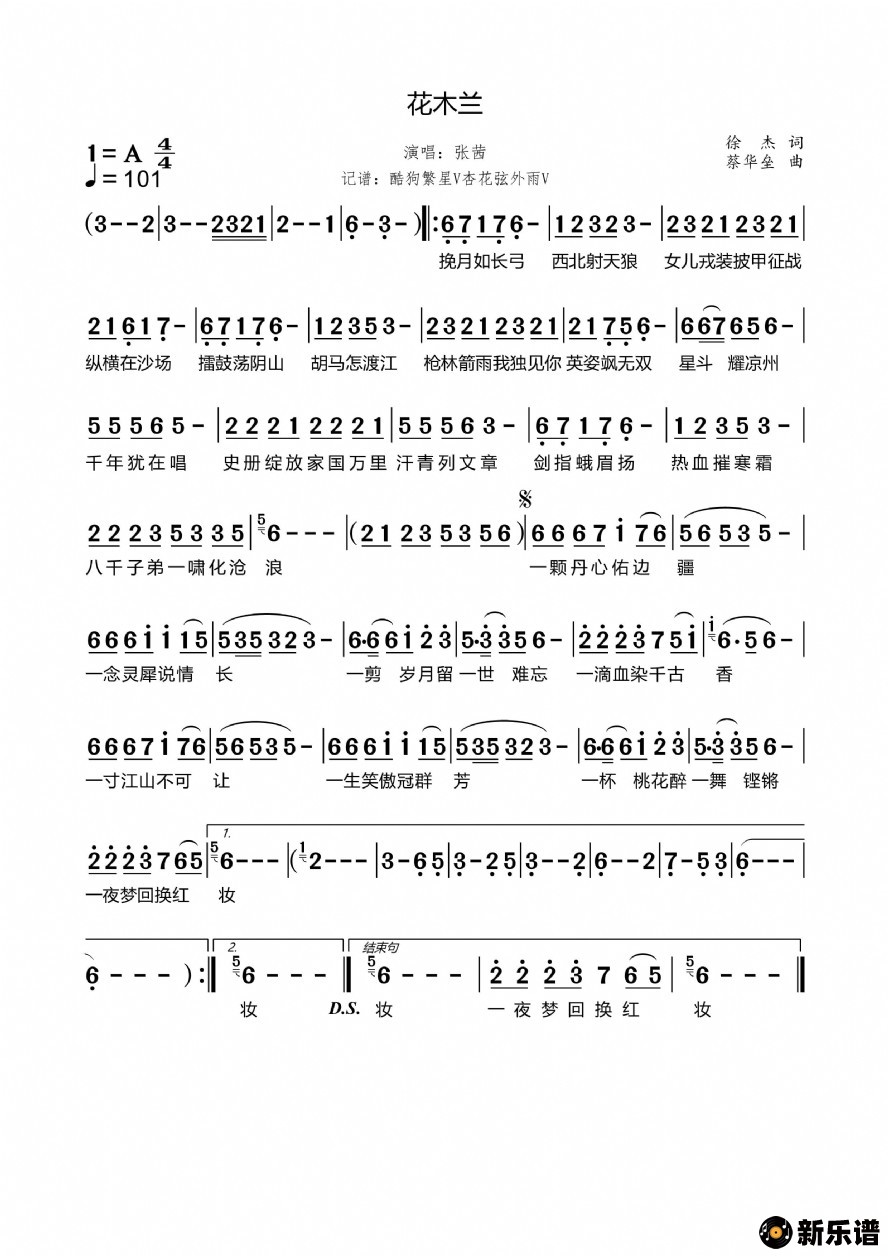 花木兰最新曲谱