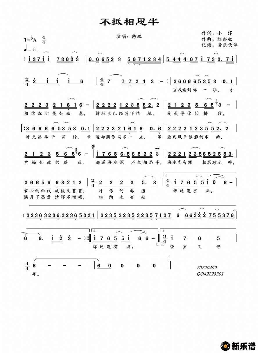 《不抵相思半》简谱 陈瑞-音乐伙伴制谱