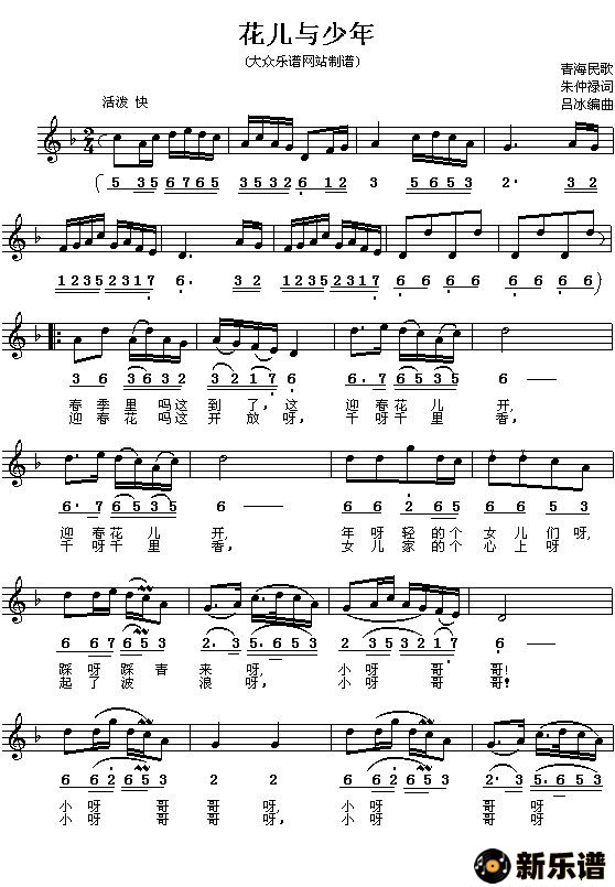马红莲等演唱的花儿与少年歌词,花儿与少年简谱.