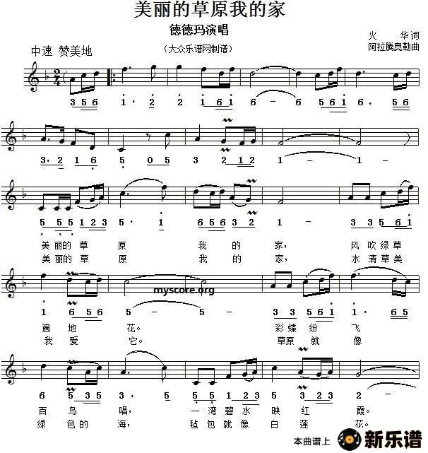 美丽的草原我的家/德德玛 相关曲谱