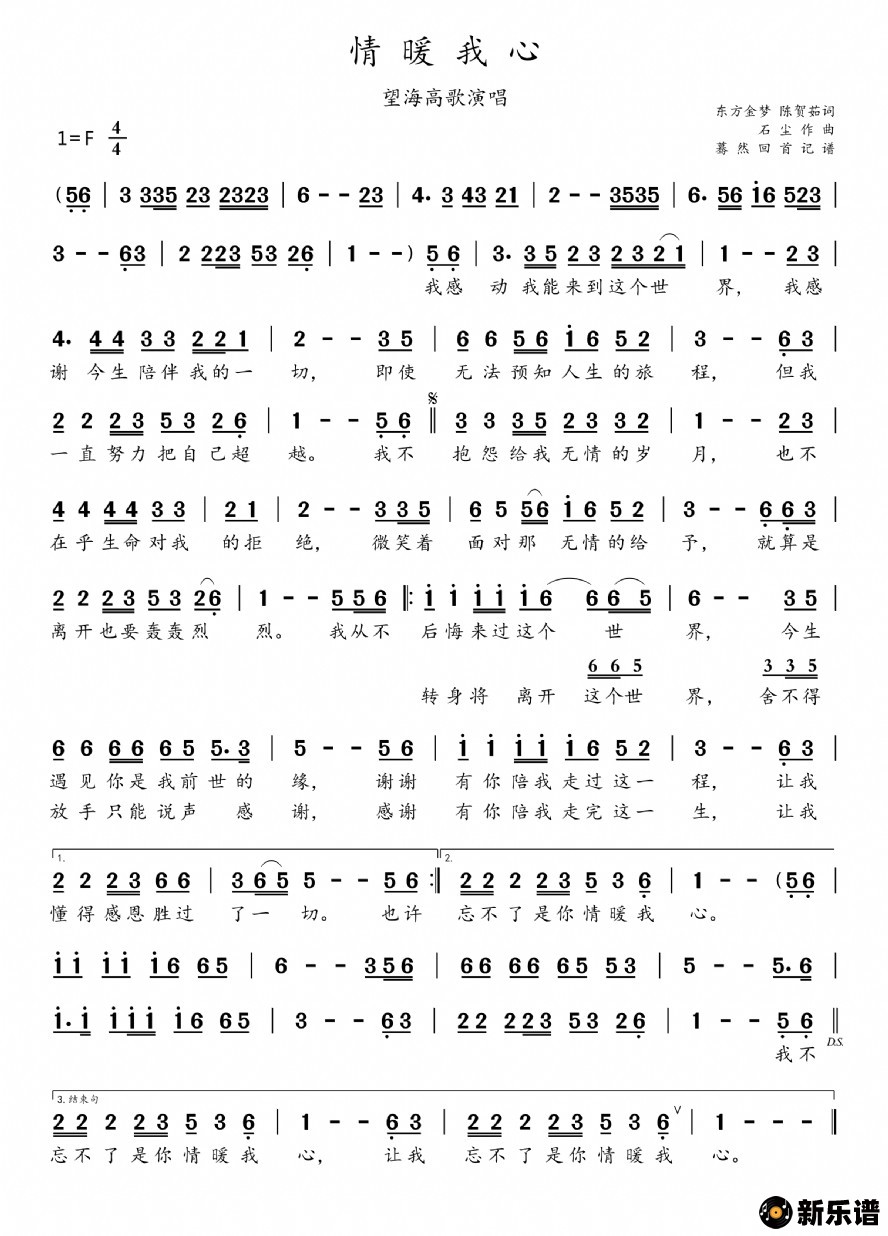 望海高歌演唱的情暖我心歌词,情暖我心简谱.