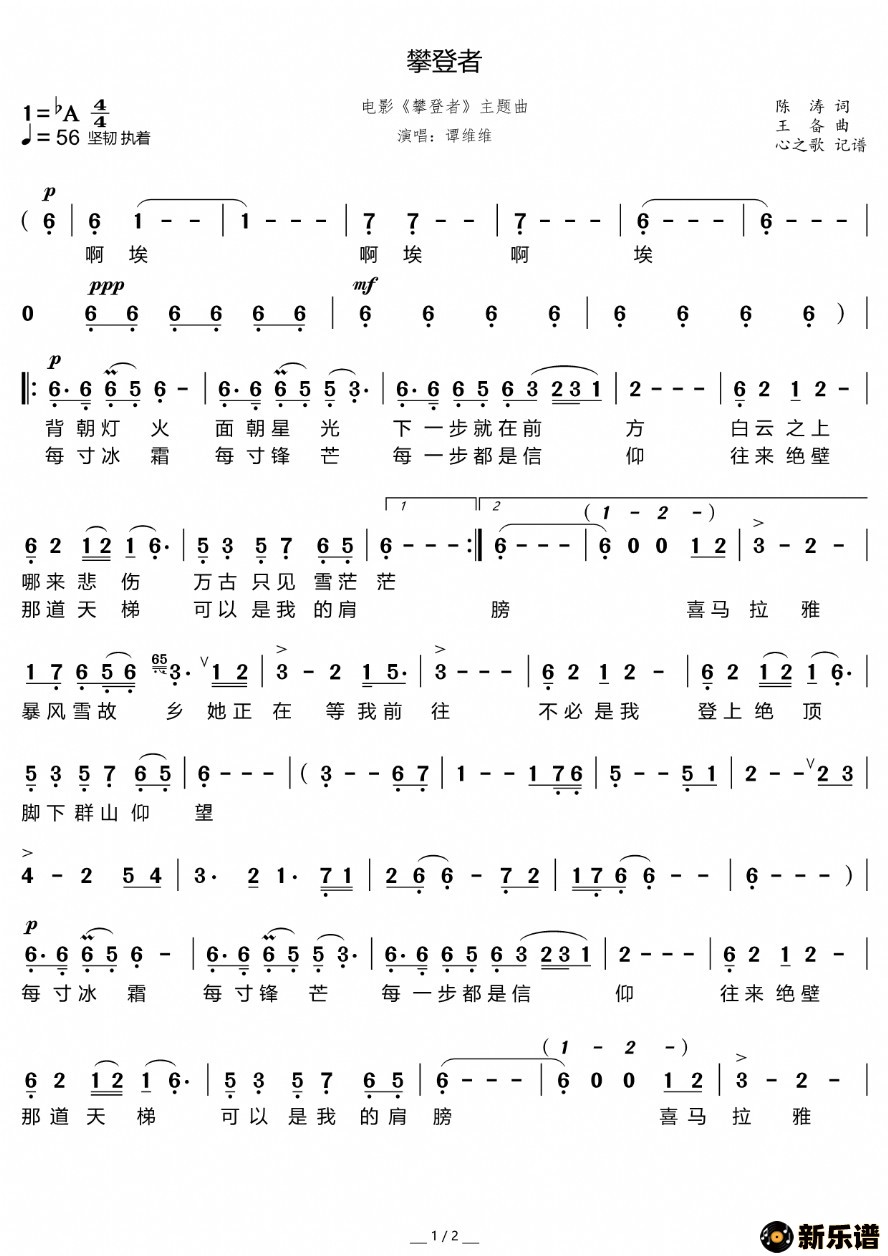 谭维维演唱的攀登者歌词,攀登者简谱.