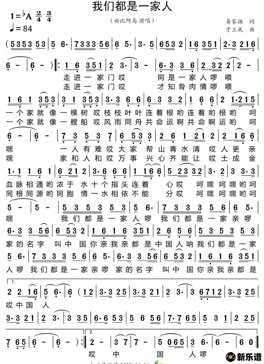 曲比阿乌演唱的我们都是一家人歌词,我们都是一家人简谱.