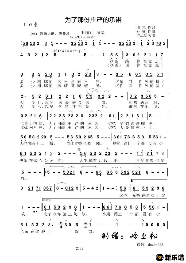 《为了那份庄严的承诺》简谱 王丽达-岭上松制谱