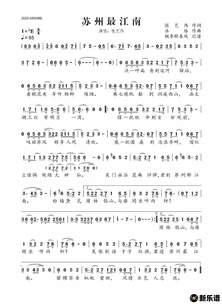 《苏州最江南》简谱 张艺伟-桃李醉春风制谱
