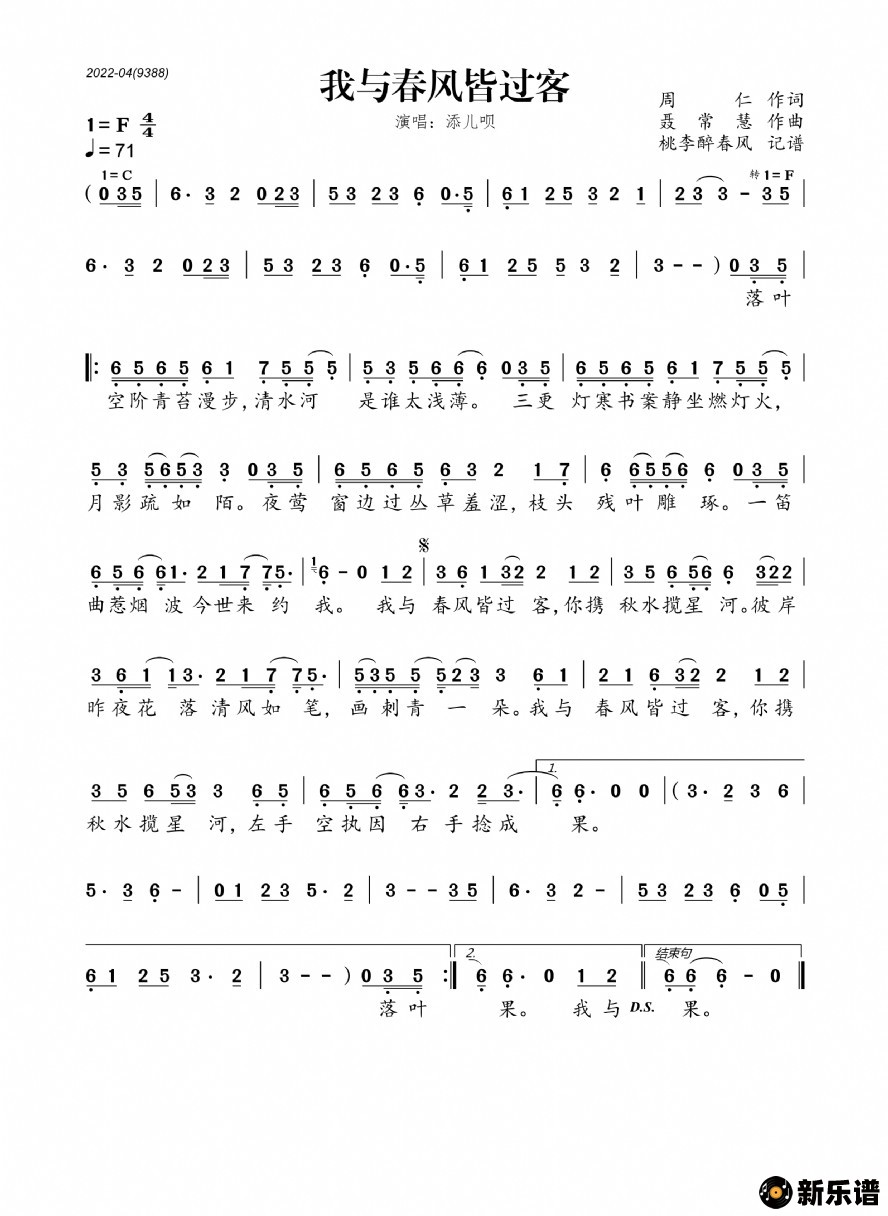 《我与春风皆过客》简谱 添儿呗-桃李醉春风制谱
