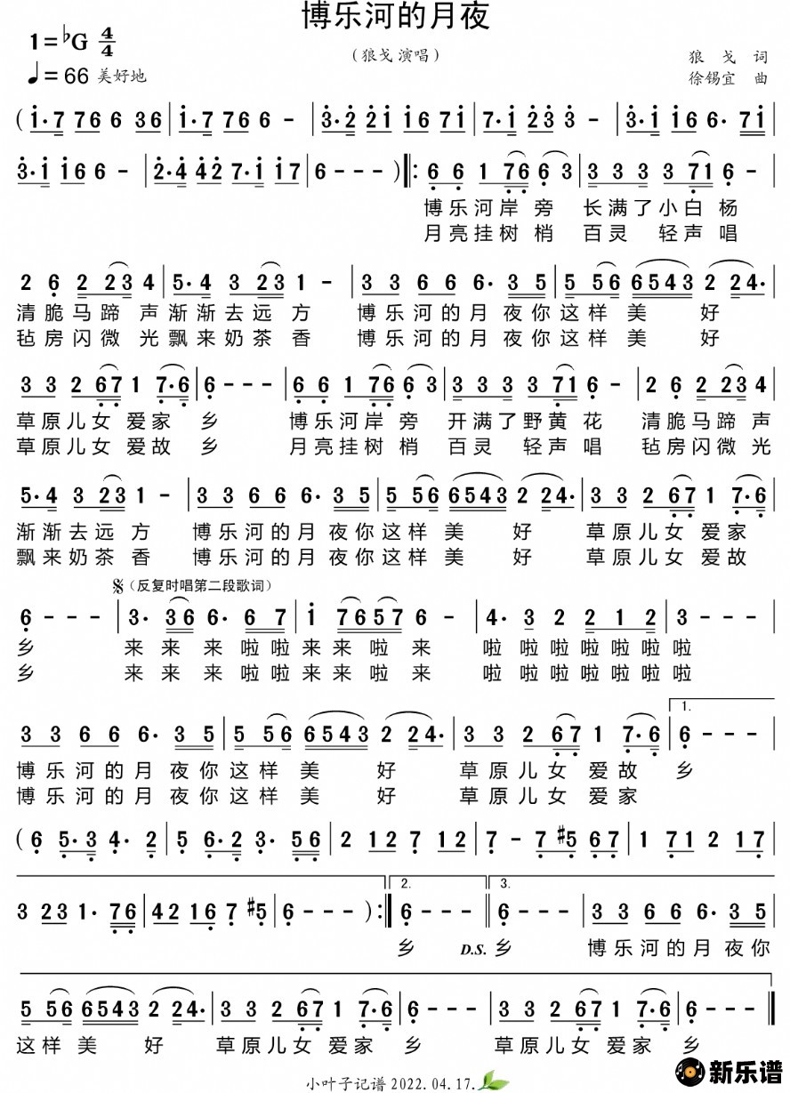 《博乐河的月夜》简谱 狼戈-小叶子制谱