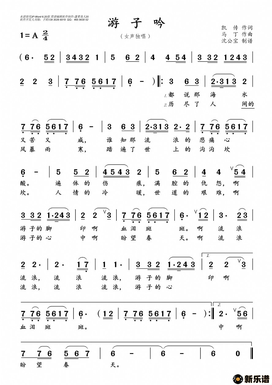 成方圆演唱的游子呤歌词,游子呤简谱.