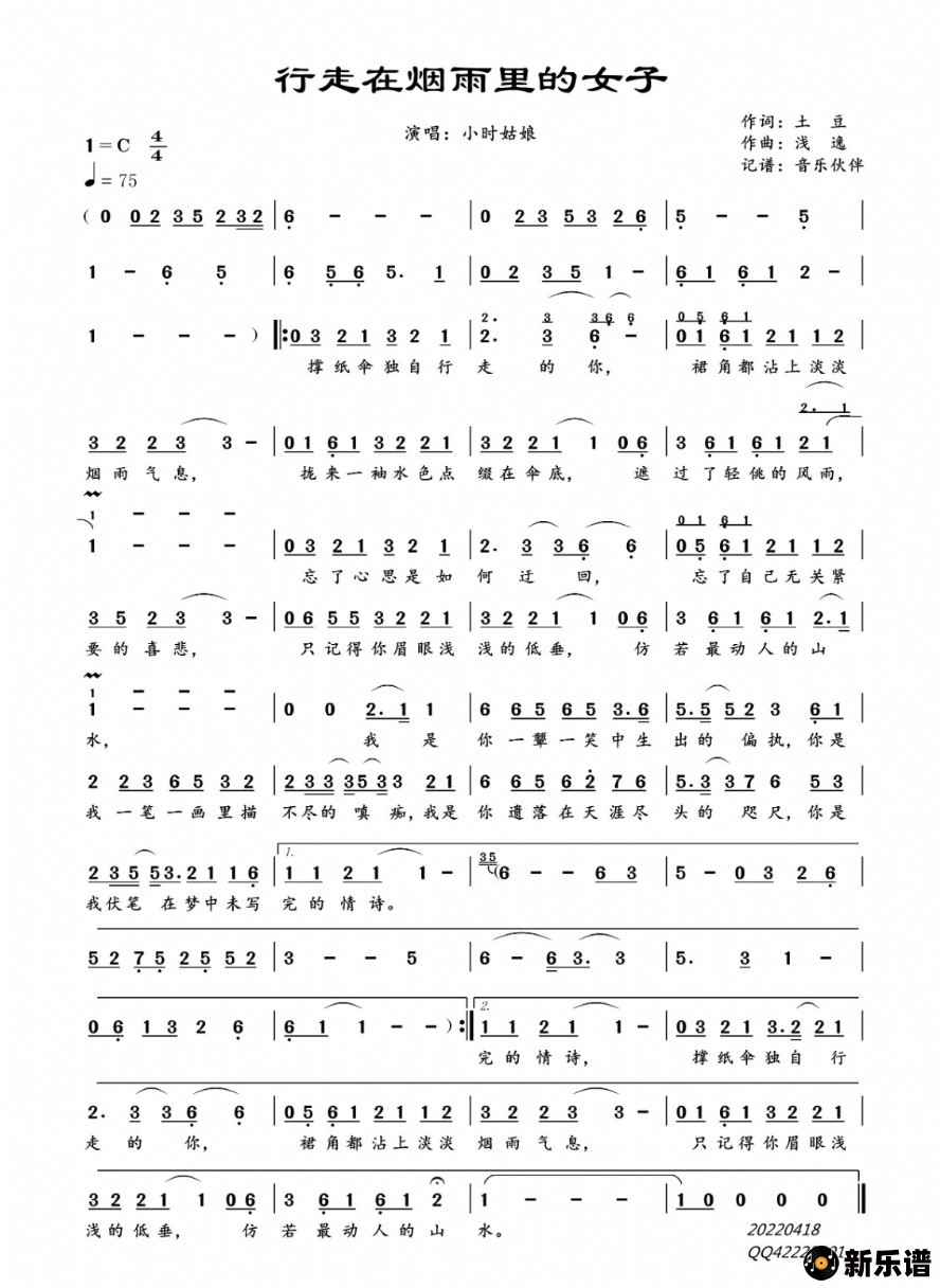《行走在雨里的女子》简谱 小时姑娘-音乐伙伴制谱