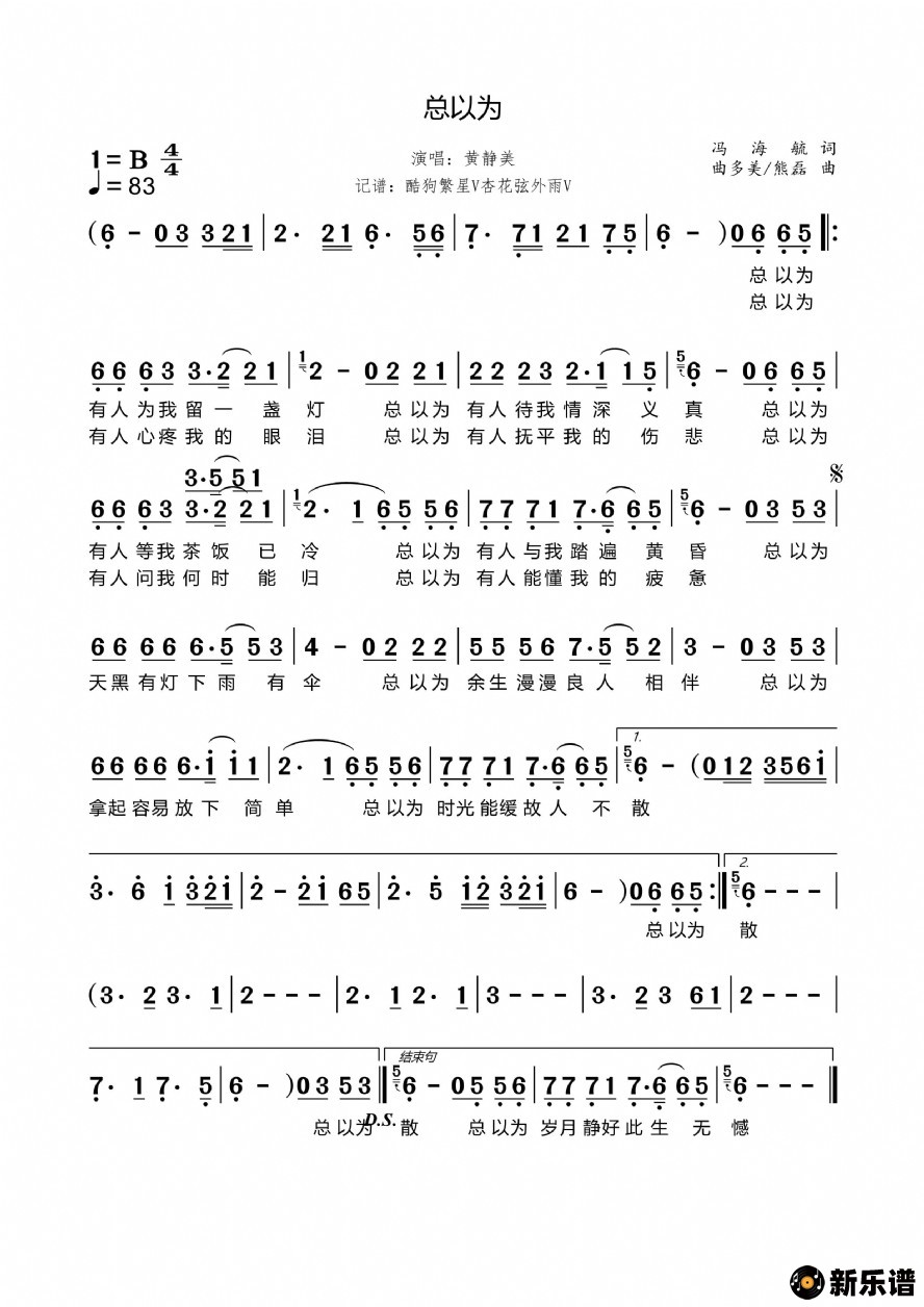 《总以为》简谱 黄静美-杏花弦外雨制谱