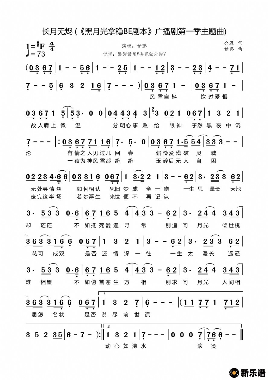 长月无烬(《黑月光拿稳BE剧本》广播剧第一季主题曲)甘璐 甘璐演唱的长月无烬(《黑月光拿稳BE剧本》广播剧第一季主题曲)歌词,长月无烬(《黑月光拿稳BE剧本》广播剧第一季主题曲)简谱. 此简谱由新乐谱会员 杏花弦外雨 上传