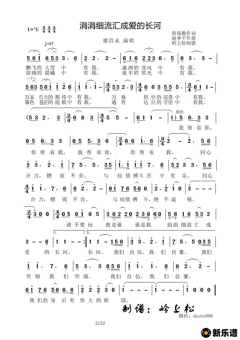 《涓涓细流汇成爱的长河》简谱 廖昌永-岭上松制谱