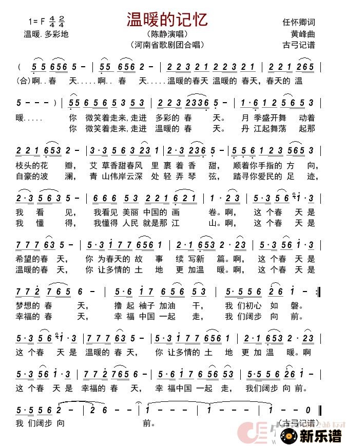 《温暖的记忆 》简谱 陈静(河南省歌剧团合唱)-古弓制谱