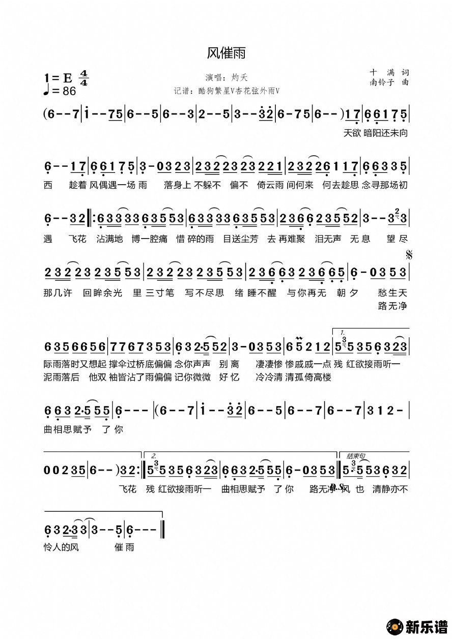 《风催雨》简谱 灼夭-杏花弦外雨制谱