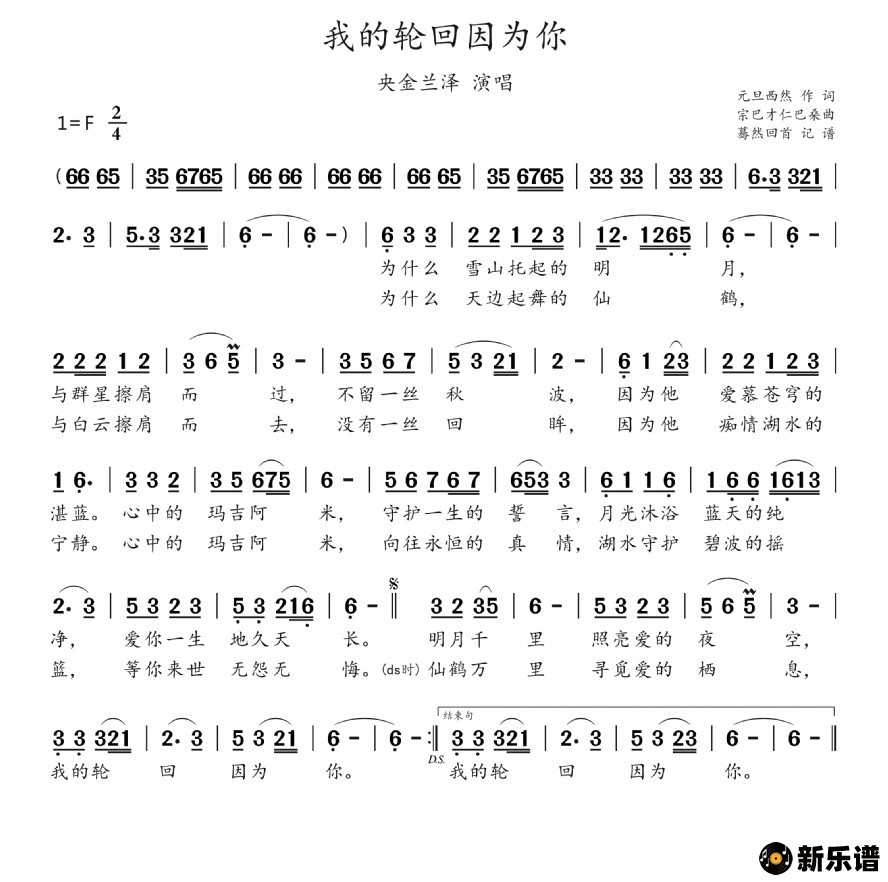央金兰泽演唱的我的轮回因为你歌词,我的轮回因为你简谱.