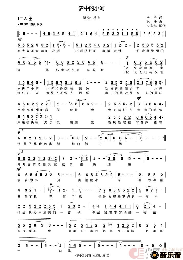 《梦中的小河》简谱 杨乐-心之歌制谱