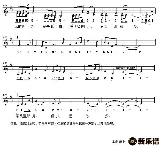 作词:[唐]李白 作曲:谷建芬([唐]李白词 谷建芬曲、线简谱混排版)