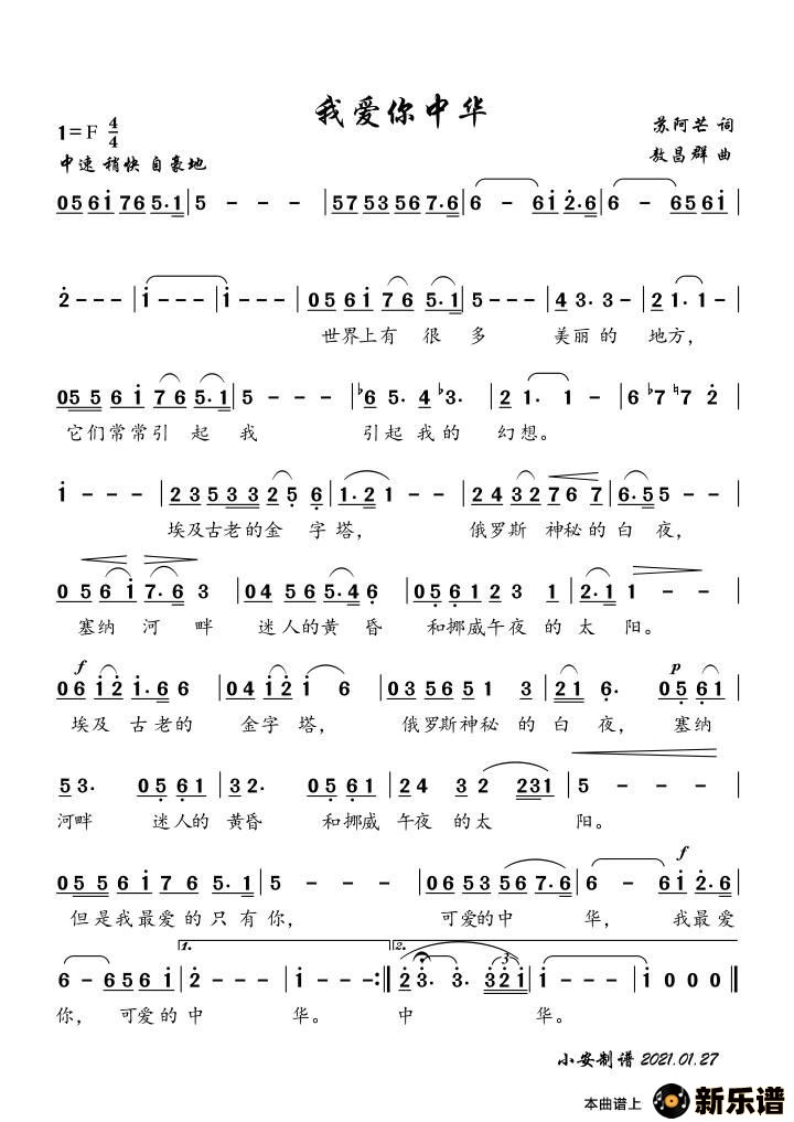 《我爱你中华》简谱 魏松/戴玉强/王传越