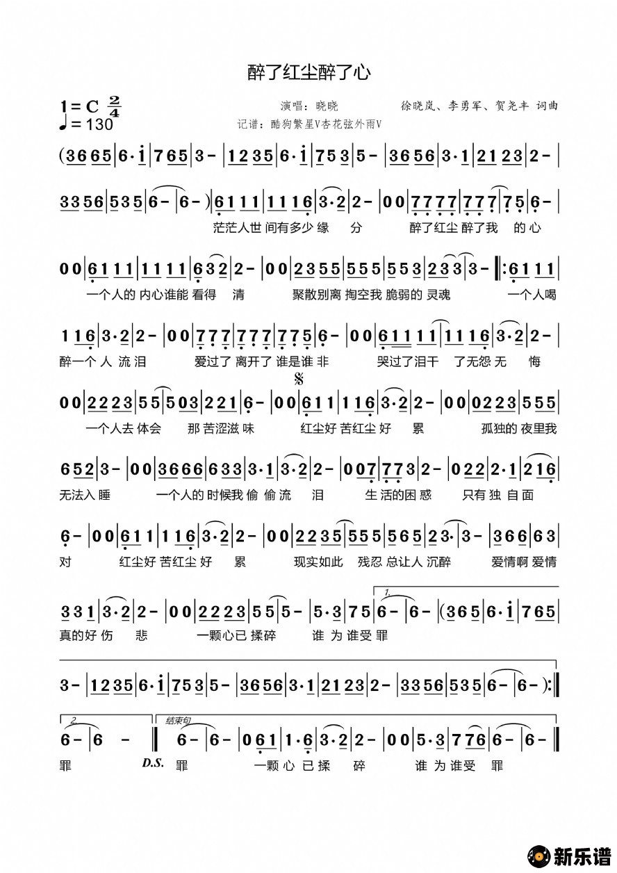 醉了红尘醉了心晓晓 晓晓演唱的醉了红尘醉了心歌词,醉了红尘醉了心简谱. 茫茫人世间有多少缘分醉了红尘醉了我的心一个人的内心谁能看得清聚散别离掏空我脆弱的灵魂一个人喝醉一个人流泪爱过了离开了谁是谁非哭过了泪干了无怨无悔一个人去体会那苦涩滋味红尘好苦红尘好累孤独的夜里我无法入睡一个人的时候我偷偷流泪生活的困惑只有独自面对红尘好苦红尘好累现实如此残忍总让人沉醉爱情啊爱情真的好伤悲一颗心已揉碎谁为谁受罪一个人喝醉一个人流泪爱过了离开了谁是谁非哭过了泪干了无怨无悔一个人去体会那苦涩滋味红尘好苦红尘好累孤独的夜里我无法入睡一个人的时候我偷偷流泪生活的困惑只有独自面对红尘好苦红尘好累现实如此残忍总让人沉醉爱情啊爱情真的好伤悲一颗心已揉碎谁为谁受罪红尘好苦红尘好累孤独的夜里我无法入睡一个人的时候我偷偷流泪生活的困惑只有独自面对红尘好苦红尘好累现实如此残忍总让人沉醉爱情啊爱情真的好伤悲一颗心已揉碎谁为谁受罪一颗心已揉碎谁为谁受罪 此简谱由新乐谱会员 杏花弦外雨 上传
