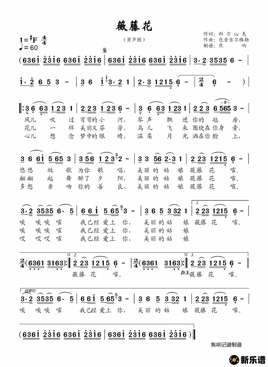 《薇藤花(男声版)》简谱 科尔沁夫-曲谱爱好者制谱