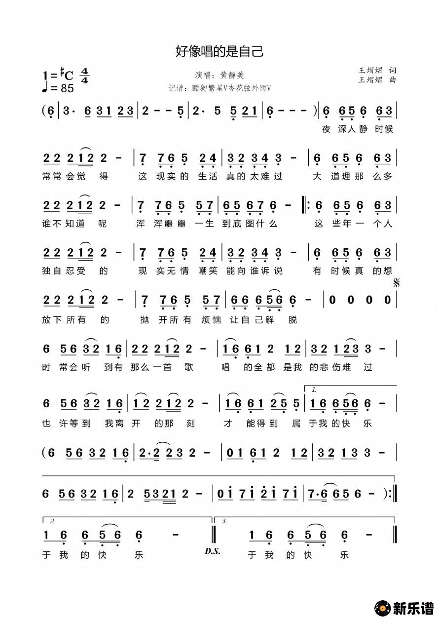 《好像唱的是自己》简谱 黄静美-杏花弦外雨制谱