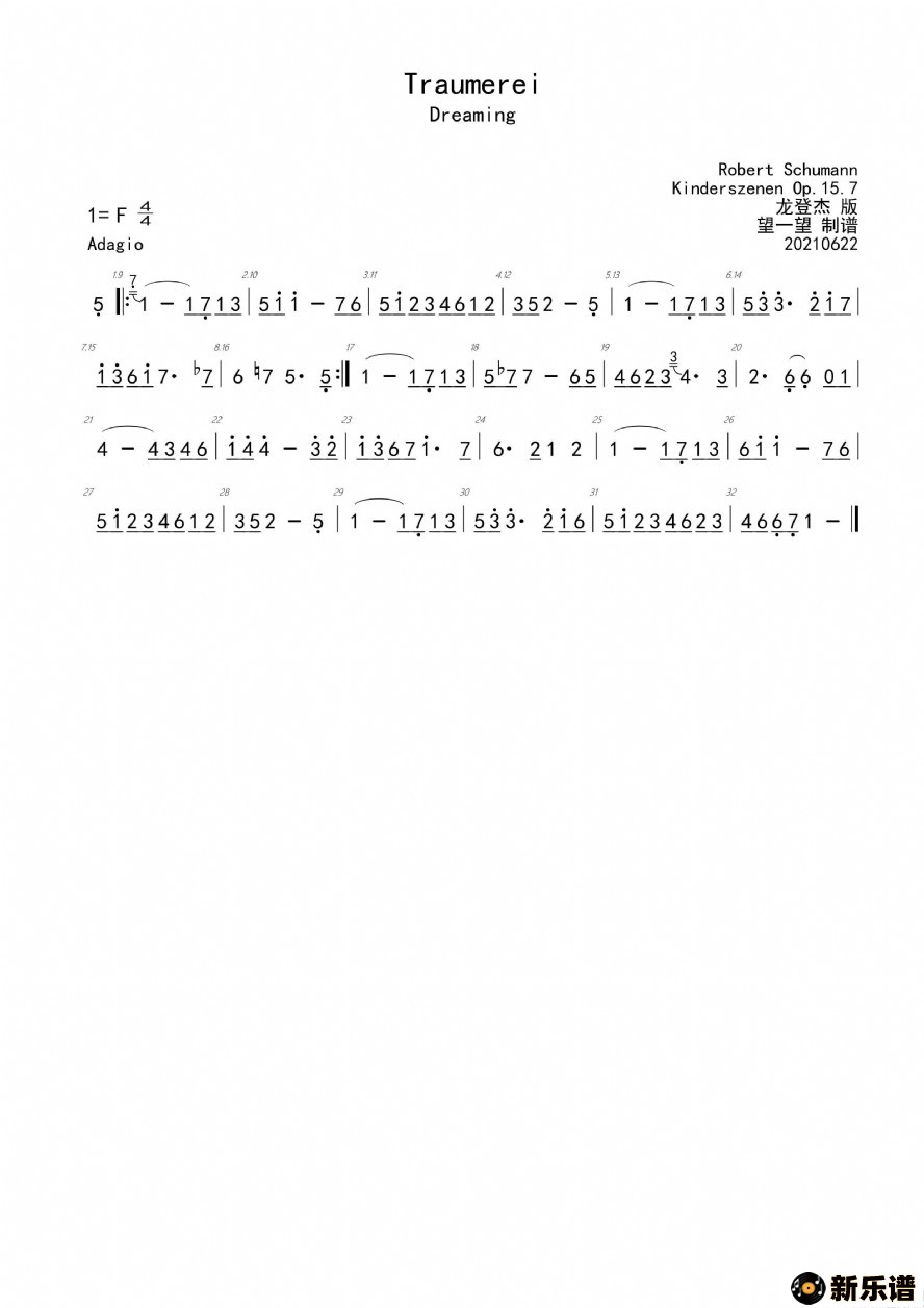 舒曼梦幻曲 f调 首调简谱/龙登杰 相关曲谱