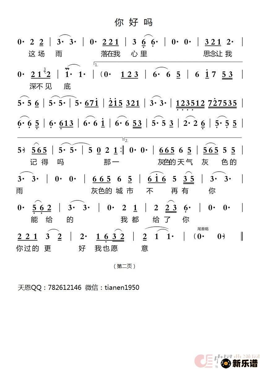 凌丰演唱的你好吗歌词,你好吗简谱.