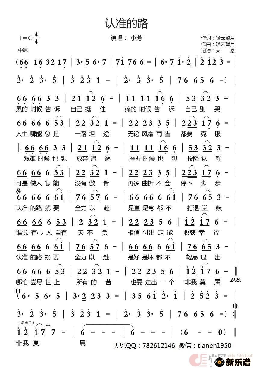 《认准的路》简谱 小芳-天恩制谱