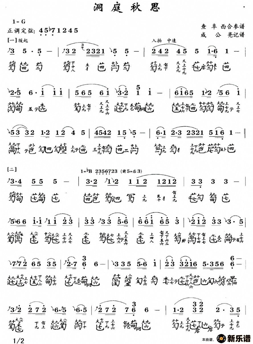 洞庭秋思/ 相关曲谱