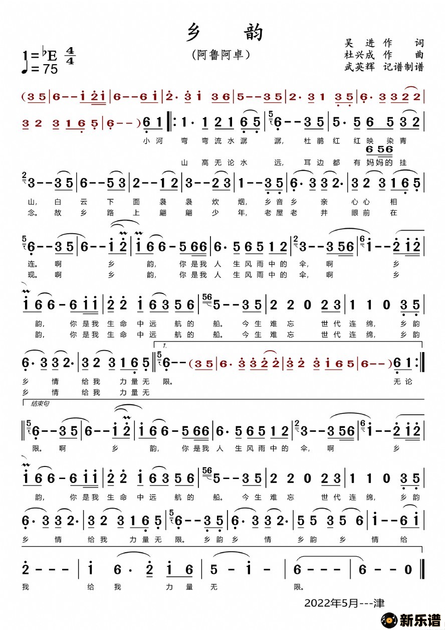 《乡韵》简谱 阿鲁阿卓-武英辉制谱