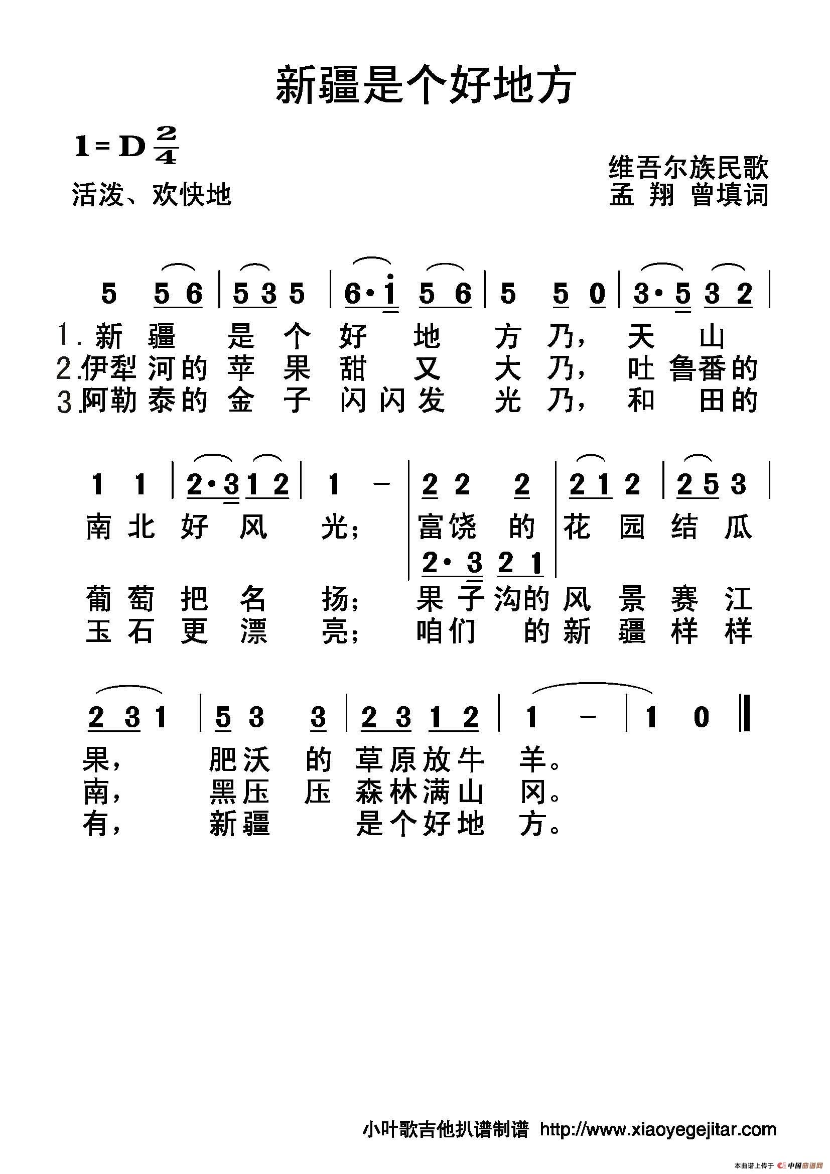 佚名演唱的新疆是个好地方歌词,新疆是个好地方简谱.