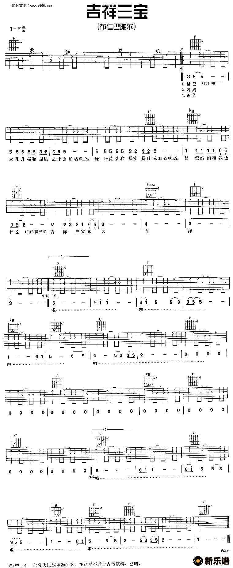 《吉祥三宝》吉他谱 布仁巴雅尔