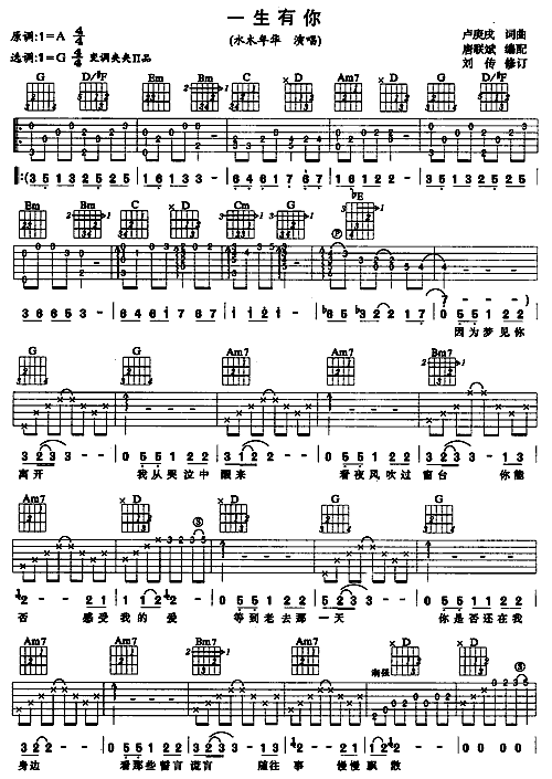 水木年华演唱的一生有你歌词,一生有你吉他谱.