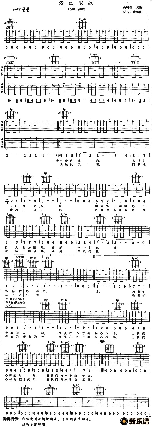 老狼演唱的爱已成歌歌词,爱已成歌吉他谱.