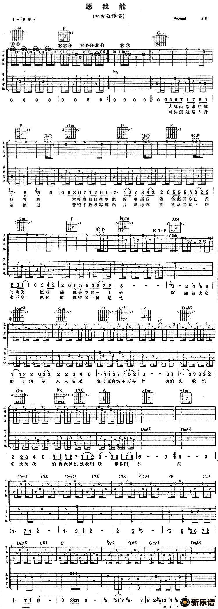 beyond演唱的愿我能歌词,愿我能吉他谱.