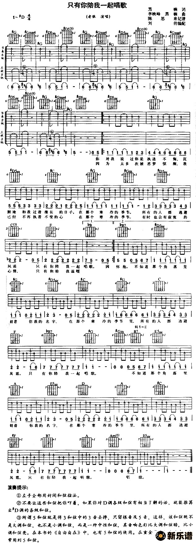 老狼演唱的只有你陪我一起唱歌歌词,只有你陪我一起唱歌吉他谱.