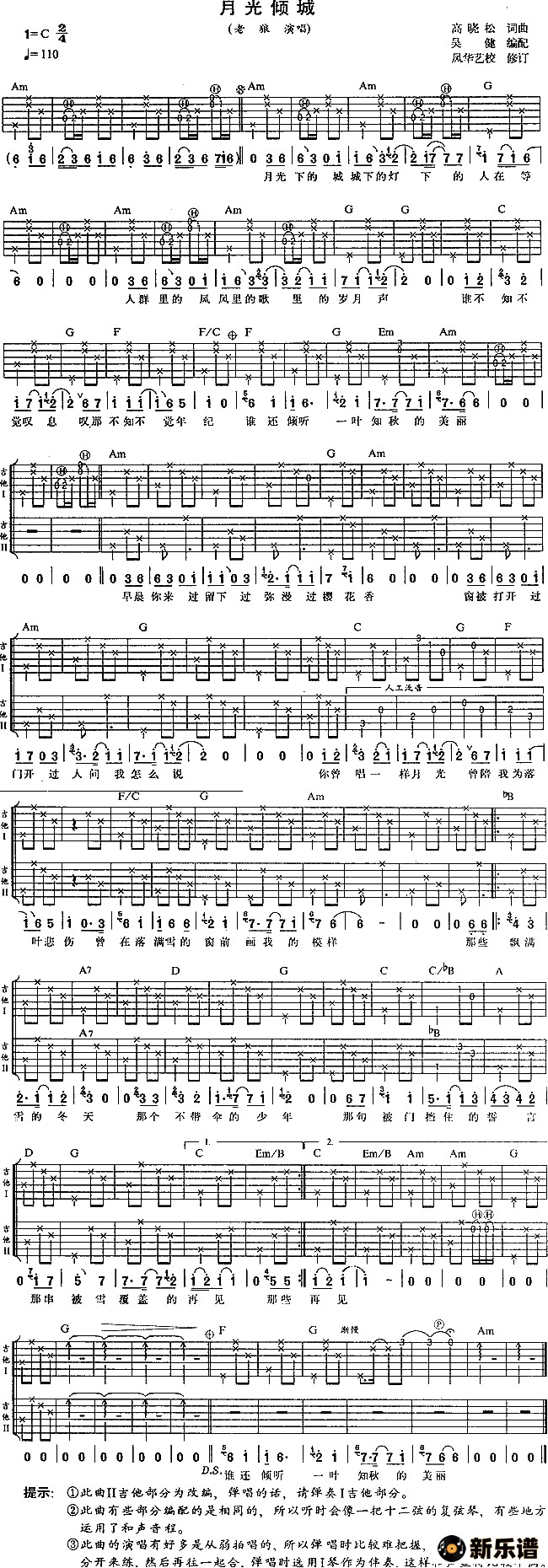 《月光倾城》吉他谱 老狼