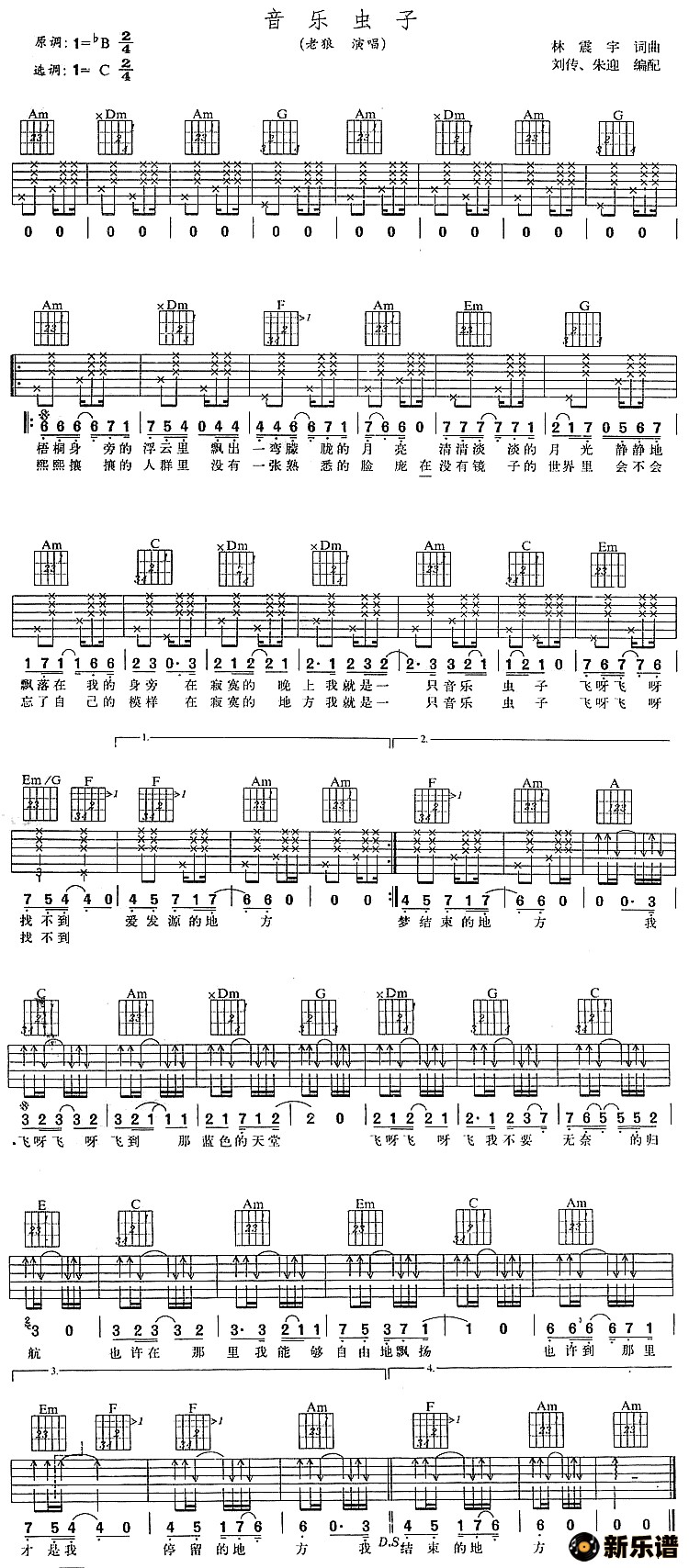 老狼演唱的音乐虫子歌词,音乐虫子吉他谱.