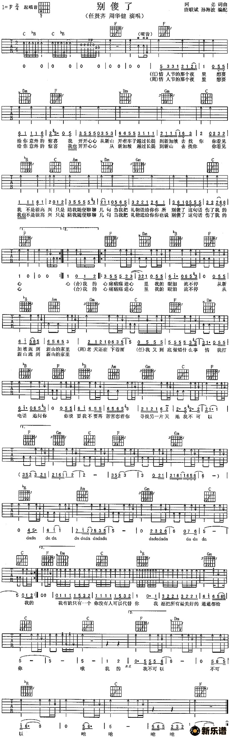 周华健演唱的别傻了歌词,别傻了吉他谱.