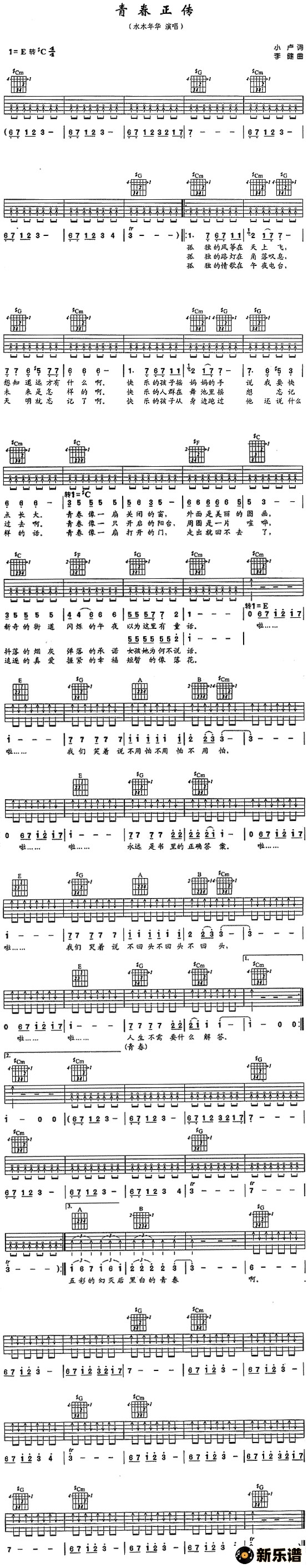 水木年华演唱的青春正传歌词,青春正传吉他谱.